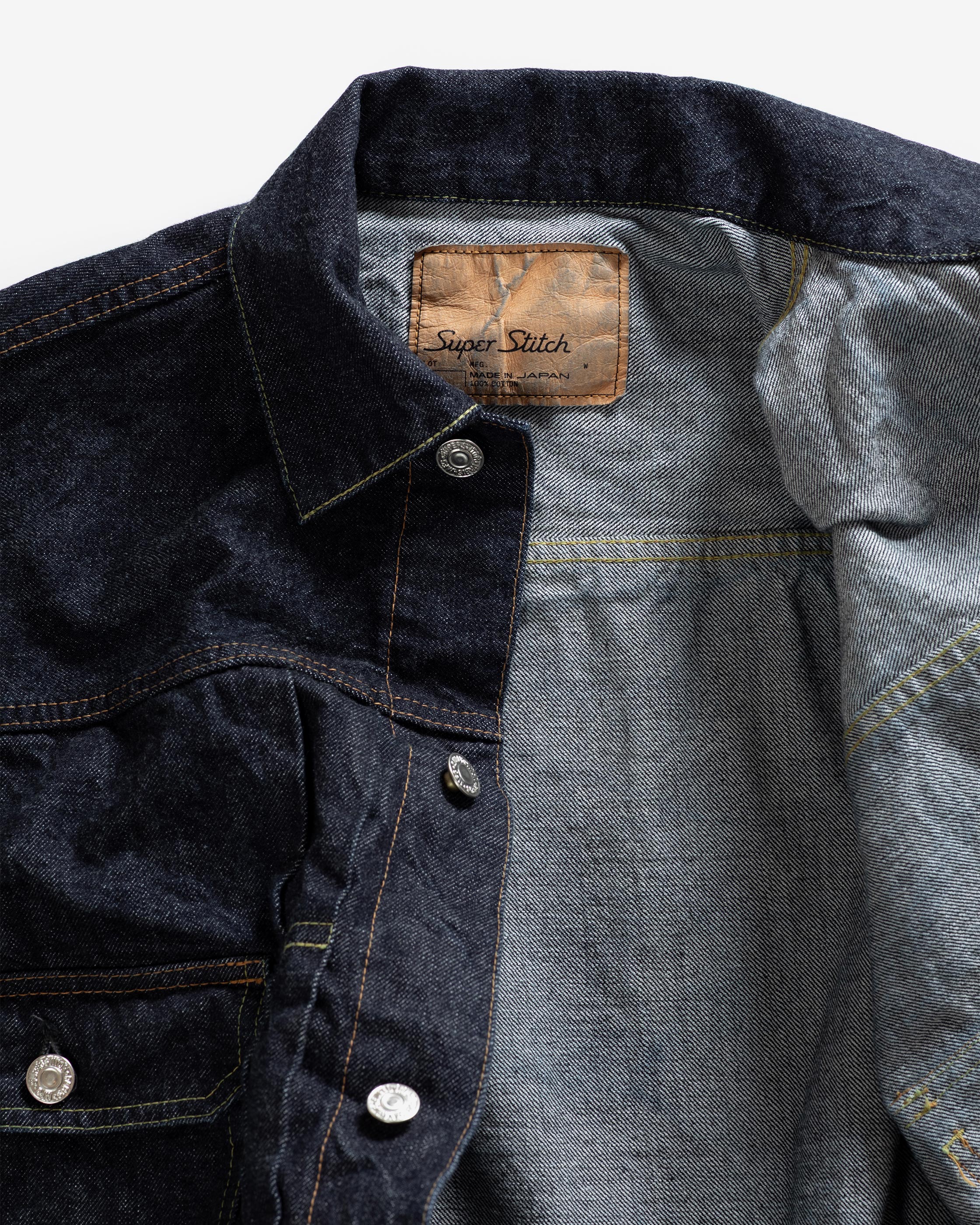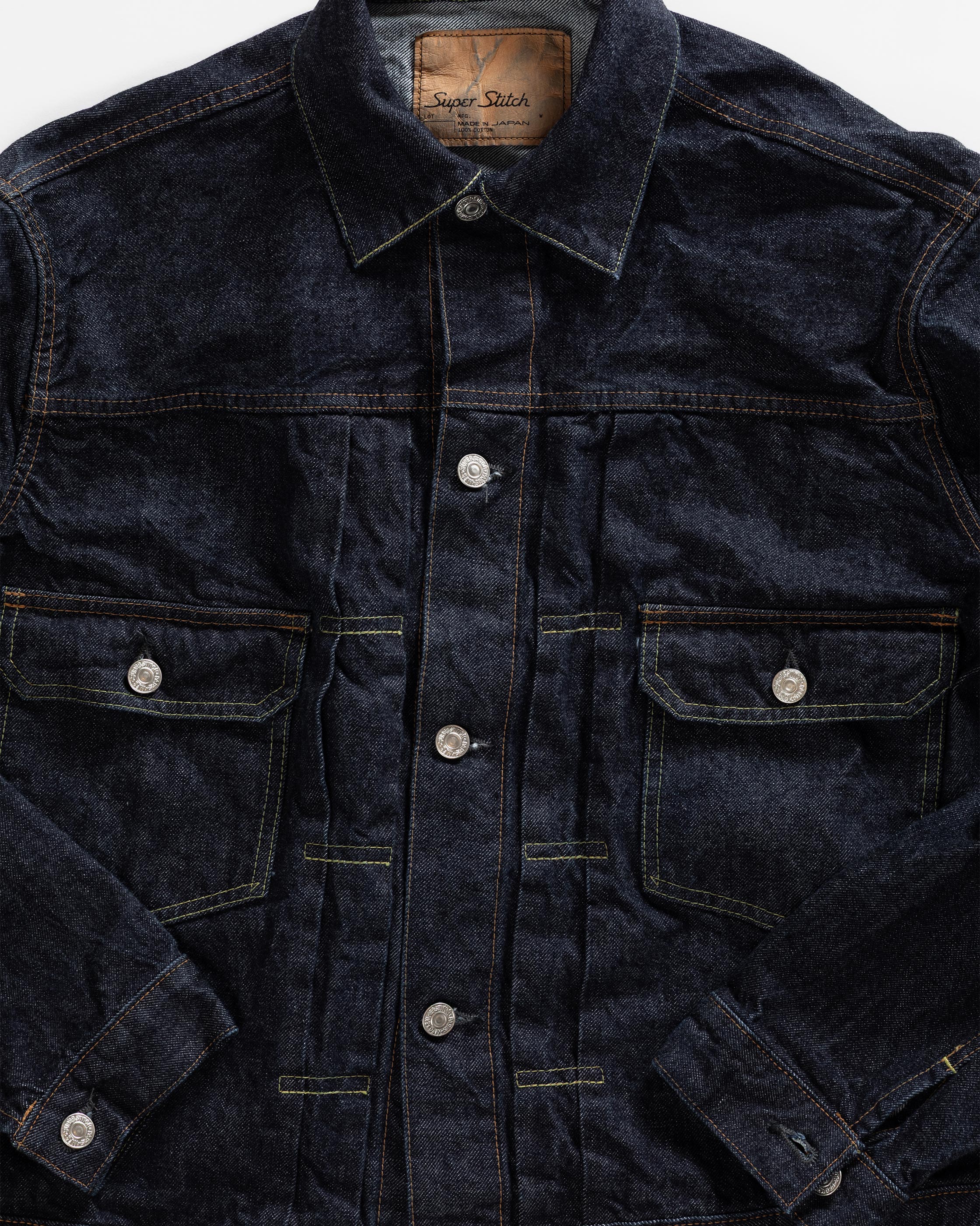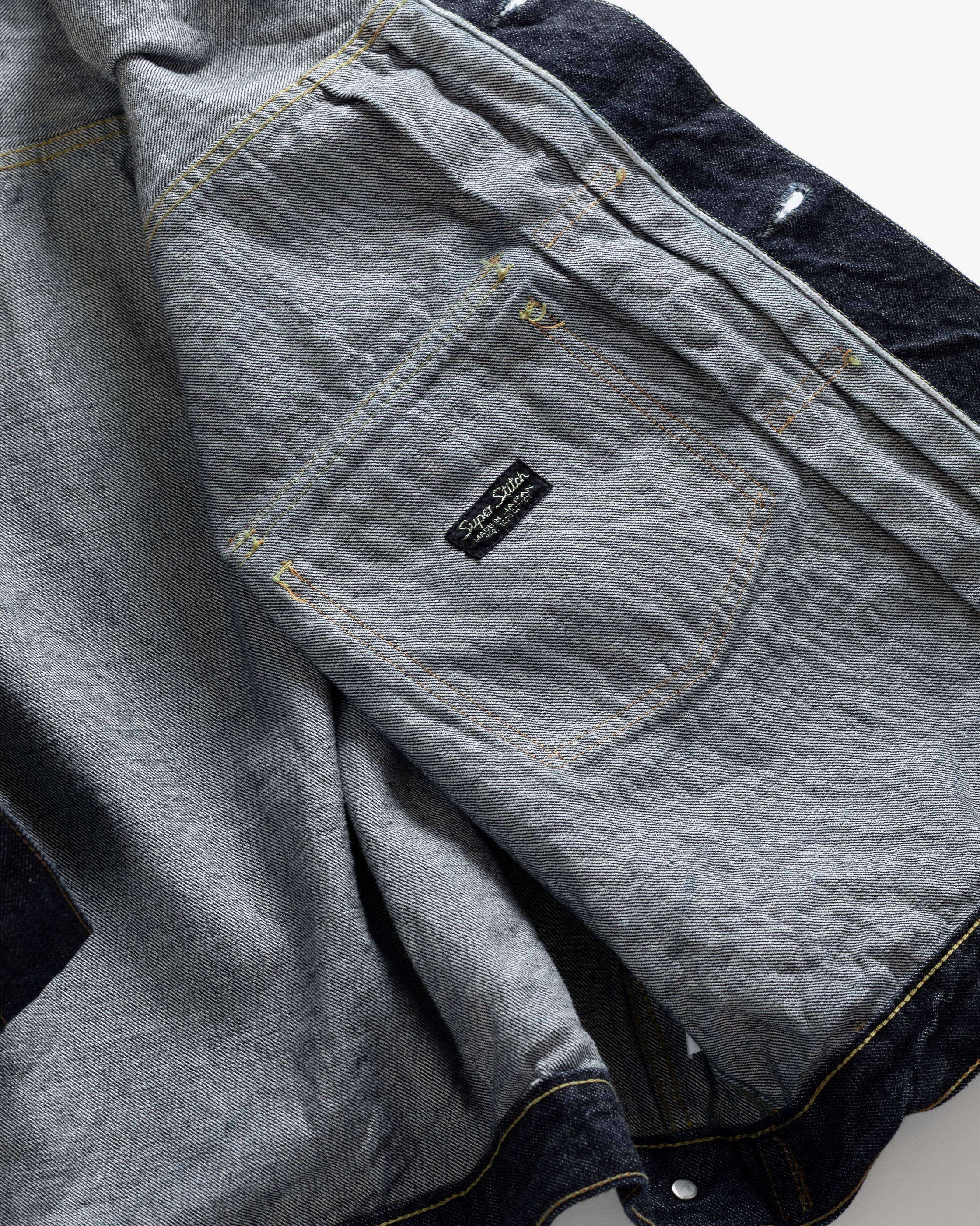The LR11 was the first foray of Superstitch into the denim jacket category. Of the denim jackets of the period, the Type II is one of the most interesting for our founder. The iconic silhouette is created by the boxy fit on the torso, dropped shoulders and front knife pleats. We wanted to revive the Type II in every way as close as possible to the original, not only in its look but also its feel. The meticulous research and development of this product took one year.