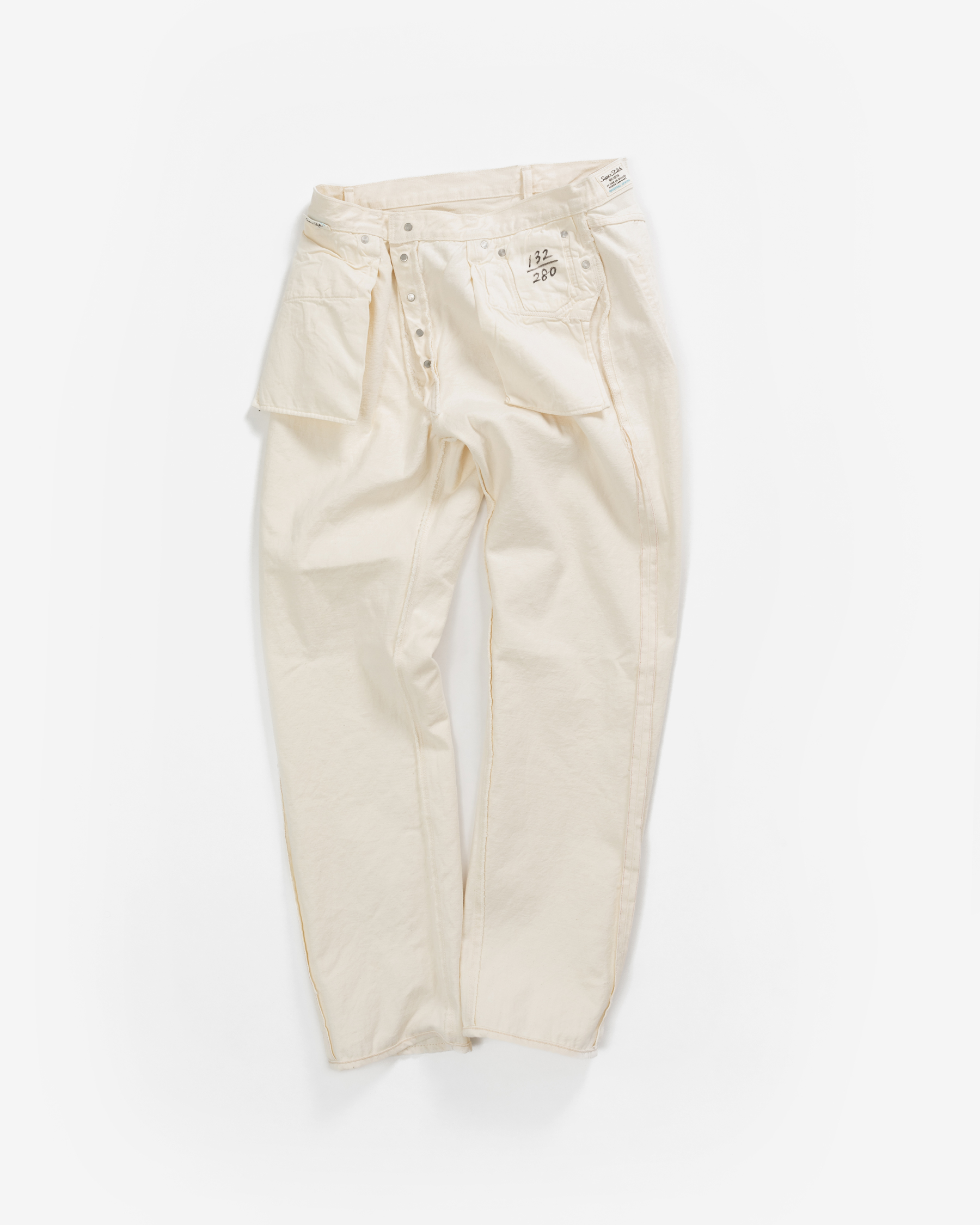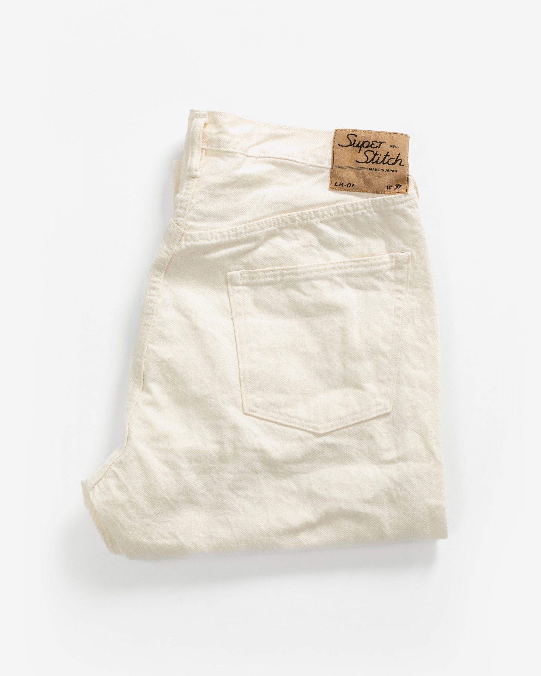 The LR01 WH is based on the same fabric as the LR01 Indigo, though uncoloured, and therefore retains the natural sergé tone.